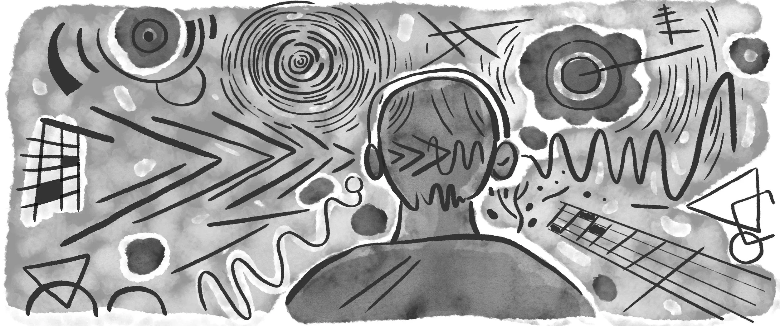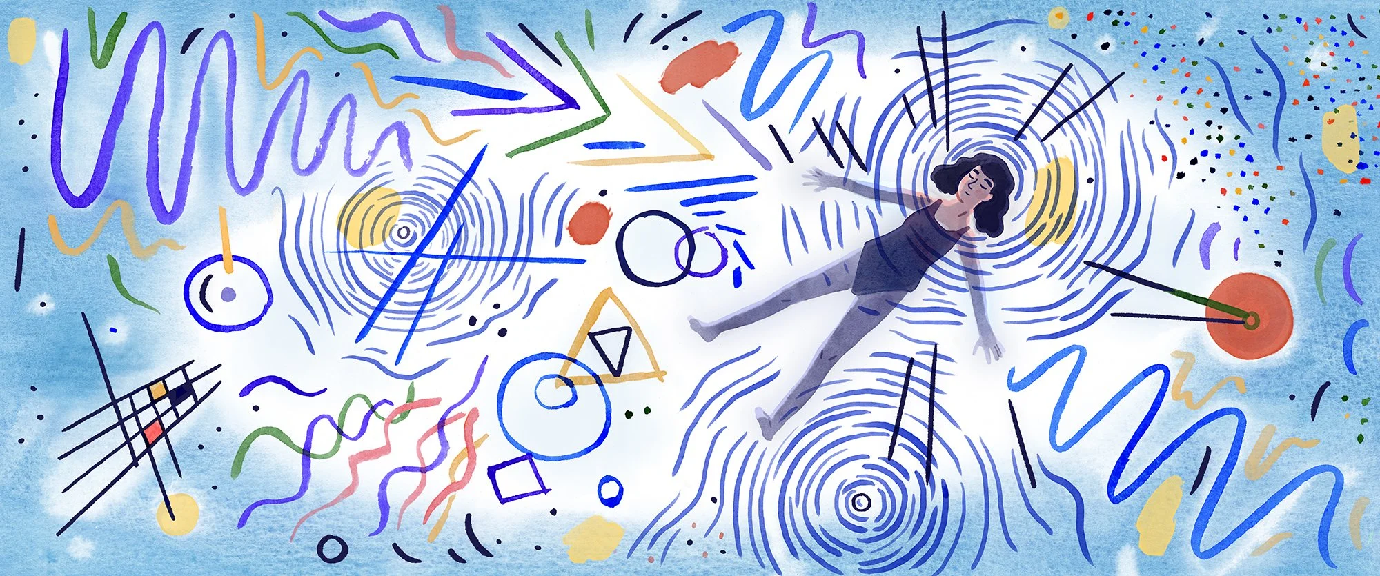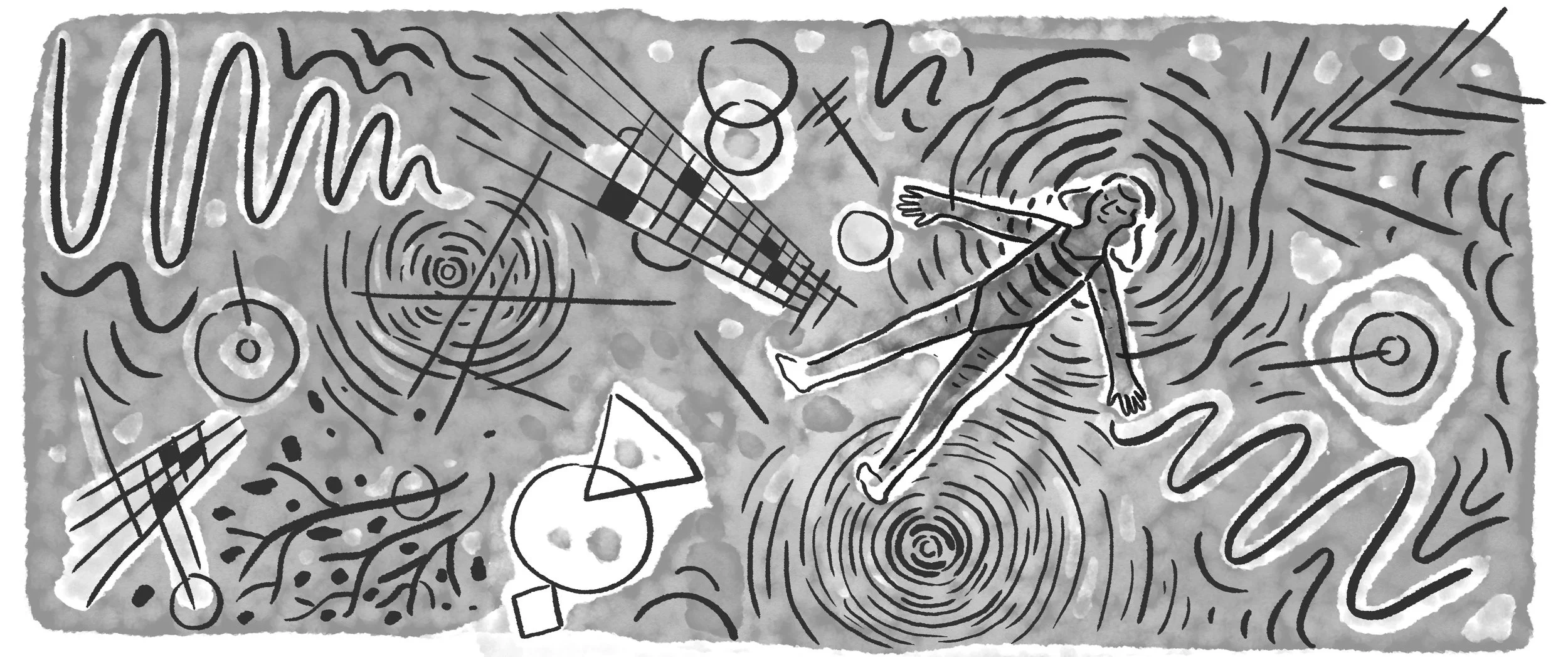 Mon approche à été de représenter les ondes d’une multitude de manière dans l’image. Je me suis inspirée du peintre Kandinsky pour imaginer des formes singulières. La confrontation entre une figure féminine “réaliste” et des formes abstraites allait dans la lignée du travail d’identité visuelle poétique que j’ai construit avec la marque Elson notamment avec l’illustration du podcast Nos chaînons invisibles.